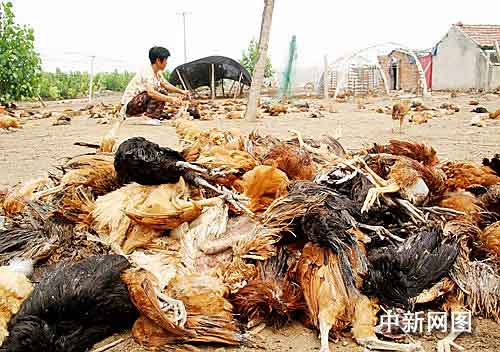 中新网盐城7月9日电 (于从文 童盛) 从六月下旬开始,江苏省滨海县城西南郊区两家养鸡场饲养的家鸡出现大规模死亡的现象,截止今天,两家养鸡场死鸡数量已超过两万只,活鸡所剩无几。