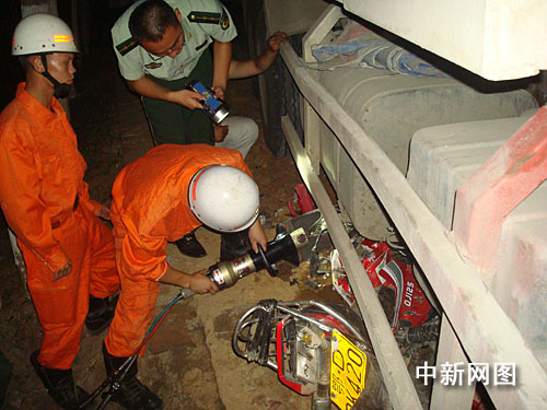 事故发生后,松滋市公安、消防、交通、公路等部分迅速赶赴现场施救,晚9时30分,消防官兵利用消防液压剪成功将摩托车车身破开,9时35分,被困者被成功救出。