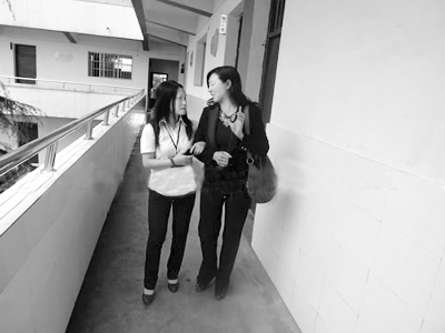 刘芳(左)日常生活需要同事照顾。