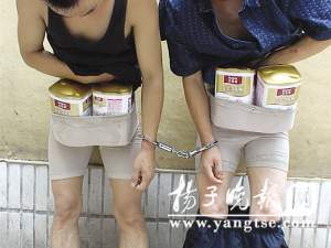昨天下午3点半左右,两名男子在南京建宁路一家超市里偷了4听奶粉藏在内裤里准备偷运出超市。在超市门口被保安发现后,两人四处逃窜,其中一人跑到奶粉货架处,脱了裤子就把奶粉放回货架上,但还是被保安和热心的市民抓住。令人啼笑皆非的是,偷奶粉的两名男子竟然各穿了三条女性紧身内裤方便作案。