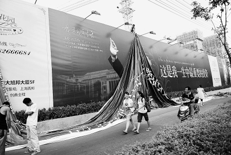 昨晚7时许,记者再次来到该楼盘外,看到很多工人正在做准备,他们要将一幅新制作的广告覆盖在上面。新广告上传达的内容和相关字样没什么变化,只是将名人头像换成了“股神说”“科学家说”等字样。几位工作人员说,听说这几幅广告涉嫌侵权,公司才紧急将其换掉的。 (记者郭欣 实习生胡岁岁)
