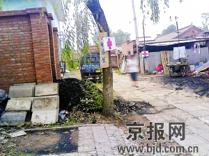 在金盏南村,一处窄小巷口路边挂着一块画着红色十字标志的硬纸壳牌子,与村子里其他地方挂着的“高价收废品”牌子相比,这块牌子似乎更加低调,连个汉字都没有。