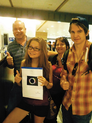加拿大籍旅客罗伯特带领全家六口来中国观看日全食奇景。他在办好入境手续后告诉边检民警:他和4个孩子都是天文爱好者,去年9月就定好了酒店,这次专程带放假的孩子来观看“日全食”。