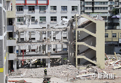 中新网温州7月20日(记者李飞云 江耘)昨天上午8点32分,浙江平阳县昆阳镇第一小学内拆迁旧的大楼导致部分房屋坍塌,造成在楼内作业的6名施工人员一死五伤。