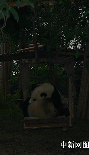 九点十三分,天更加黑了,记者发现,其中一只大熊猫朝着兽社走去。饲养员侯桂芳告诉记者,日全食天完全变黑的瞬间,大熊猫表现得比较兴奋,在幼稚园到处跑,估计可能是属于比较烦躁,但是很快它们就适应下来,那只往兽社走去的熊猫,估计是因为它感觉天变黑了,应该要回家了。