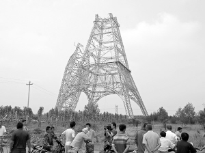 7月23日19时,(河北省石家庄市)晋州市遭遇一场罕见暴风雨袭击,瞬间最大风力达9级。暴风雨中,一座未交付使用的电视塔轰然折断(详见本报昨日A3版)。已经初步建成的一座新塔为何承受力如此之弱?是什么原因让这座被当地政府称为标志性建筑的电视塔突然倒塌?昨日,记者再次奔赴晋州进行采访。