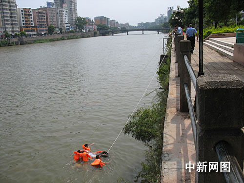 中新网韶关7月27日电(冯昶 袁少洪 陈红虹 叶飞)在广东韶关南雄市,一名小学男老师因感情问题一时想不开,跳入水深几米且浑浊的浈江河寻短见。南雄特警接到报警后快速下水搜寻,及时将其救上岸,化解了一起悲剧。