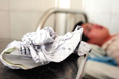 在谢岗人民医院四楼住院部,记者见到,江赟的上衣被完全撕破,全身沾满了淤泥。眼角红肿,其脑部、颈部、腿部等多处有明显抓伤痕迹。而南方都市报记者莫晓东,大腿青肿,颈部、全身等也有明显被抓伤痕迹。据两人的病历显示:江赟,左眼骨胀肿、左颈部抓伤、全身多处软组织损伤。莫晓东,左耳后肿胀、多处皮肤破损、右大腿肿胀。主治医生表示,两人全身多处受伤,特别是本报见习记者江赟,在今年5月刚做完左听小骨手术,而在昨天又被人重击头部,需要做进一步观察治疗。 (记者唐波、易建成)