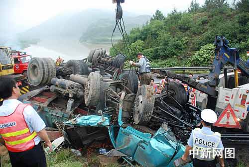 中新网金华7月29日电(记者 江耘 通讯员 高辉 邹宁浩) 7月29日4时47分,在浙江金丽温高速公路金华与武义交界处发生了一起交通事故,一辆大挂车冲断护栏翻到对面的车道。事故造成了两人死亡一人受伤。