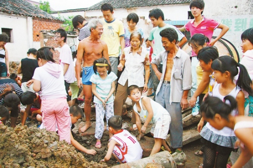 埋着银元的泥土是来自樟三村中间的一处旧宅基地内,所以当记者赶到那里时,发现约100平方米的宅基地早被200多个村民堵得严严实实,个个满身泥污,掘地寻宝。