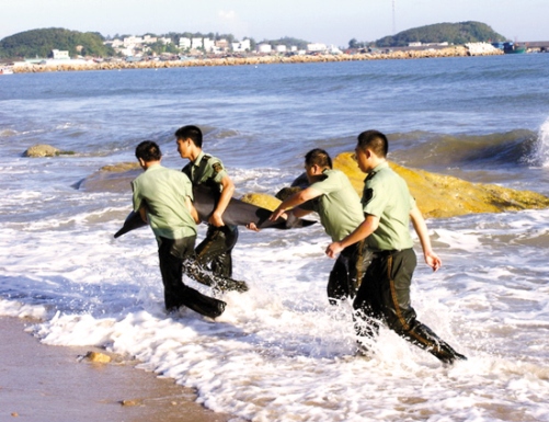 16时40分左右,南澳县云澳边防派出所官兵和渔政人员赶到海豚搁浅的云澳赤石湾,只见烈日之下,四只大海豚正拼命用尾鳍拍打沙滩,汹涌的海浪不断将海豚冲向礁石,致使海豚浑身伤痕累累,情况危急。海豚体长均超过两米,重逾100公斤,最大的一只体重达300公斤。