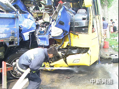 此时,仅剩货车驾驶室两人和宇通客车副驾驶位置的一名乘客被困。由于被撞部位变形严重,消防队员只能利用破拆工具逐个清除障碍,营救被卡人员。最后虽然救出,但有两人因伤势过重,已经死亡。