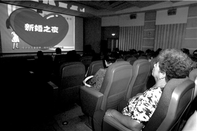 昨天,观众在电影院观看以计生知识为主题的动漫短片。昨天,记者从海淀区计生委了解到,即日起,海淀区的每个影剧院内,每场电影放映前都会插播一段计生短片,预计明年年底前,此计生短片播放数量将达到万场。内容包括:避孕方式选择、免费婚检等。(本报记者欧阳晓菲 李秋萌摄影报道)