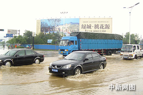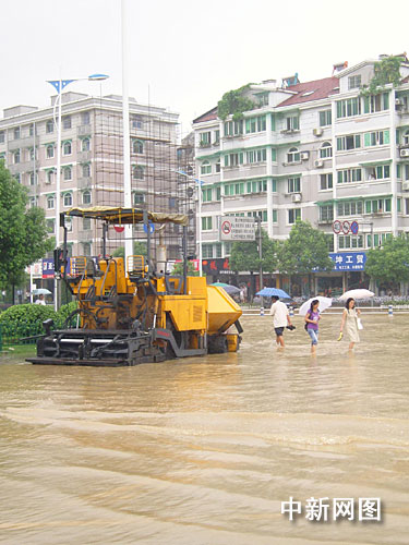 中新网杭州8月10日电(记者 龚读法 见习记者 王磊 实习生 马杰)8月9日,受第八号台风“莫拉克”影响,杭州降水量剧增,杭州不少道路遭雨水淹没。8月10日,“莫拉克”对杭州的影响开始减弱,杭州道路积水有所缓和,而之前积水最严重的天目山路永和路口足膝的积水,也开始下降,各部门正积极排涝工作中。