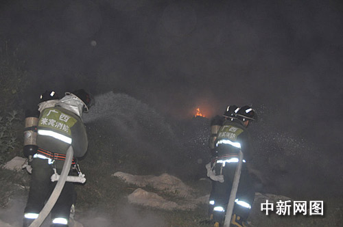中新网来宾8月10日电 (陈小勇 王刚) 8月10凌晨1时30分许,广西来宾市兴宾区物资总公司炸药库附近,一堆不明物体突然发生燃烧并产生大量烟雾,火势逐渐向四周蔓延,严重危及到仓库内存放的10吨炸药。
