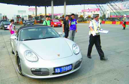 除了军警车辆之外,交警还对社会车辆进行了严格检查。昨日上午10时,一辆车牌为川A7P8××的保时捷轿车驶出成雅收费站后,交警发现保时捷的后车牌有污损,将车辆挡了下来。司机王先生下车之后,民警又发现他脚上还穿着拖鞋。