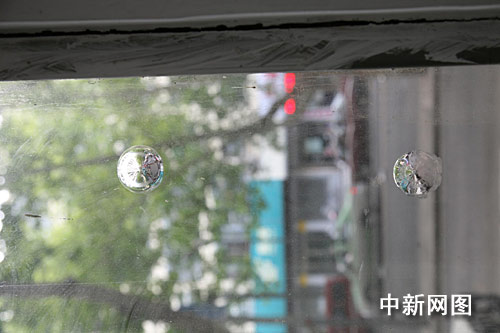 据记者了解,从今年的6月中旬起,临街的几家商铺均已断断续续的遭受过的这样的钢弹袭击,只是今天情况特别的严重。商铺的玻璃窗户和玻璃对开门均有被实心钢珠击穿或击碎的痕迹。