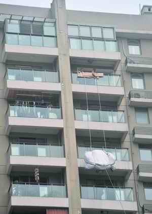 29楼业主涂小姐通过物业人员证实,确实是刚买的沙发尺寸过大,不得不从阳台吊进客厅。“沙发是整体的,不吊运就进不去。”工人介绍说,小区电梯口只有80厘米宽,装不进沙发。随后,大家想到从楼梯背运,测量后又发现,涂小姐的大门竟也比沙发小。而如此折腾耗资也不菲。“三座的1600元,两座的1000元,一座的700元。”工人说,涂小姐运了一套三件,所以优惠成了3000元。