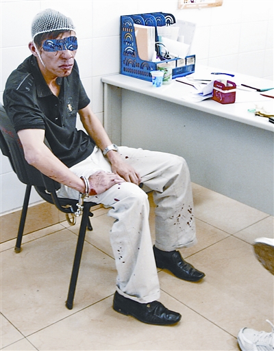 昨日(26日),一血流满面的中年男人戴着手铐,被警察带进(武汉)市六医院急诊室,该男子是因偷车而被市民打成这样的。