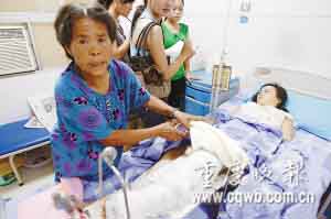 昨日,王丹16岁的女儿晶晶在医院照顾她。在母亲讲述自己被打的那些事时,晶晶总是忍不住掉下眼泪。晶晶有些紧张,怕逃跑的父亲找到医院打人。
