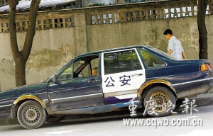近日,南岸区天台岗小学附近出现了一辆奇怪的“警车”(如图),该车除两扇门采用警车涂装,拥有警用徽标和“公安”字样外,其余部分通体深蓝色、残破不堪。这样的车怎能执行任务?路过的人都感到纳闷。