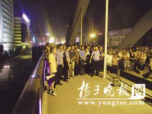 5日下午5点30分左右,正是下班的高峰期,丹阳城区中心的云阳大桥上车水马龙,人流如梭。就在此时,一名年轻男子手拿酒瓶,歪歪扭扭,面红耳赤,推着一辆自行车,来到桥上。将车靠上桥栏后,该男子竟徒手攀爬桥拱,路人以为此人是维修大桥的,也没有太在意,但不一会,该男子居然爬到桥顶,大声喊叫:“我要跳桥!”路上行人纷纷驻足观望,很快大桥上就聚集了上百名路人,且越来越多的市民堵在桥上,开始替该男子担心起来,见男子左右摇摆,桥上市民惊叫声不断。大桥之上,很快出现拥堵现象,直至无法通行。有人立即报警。
