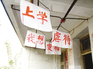 “我想上学”、“变相虐待”……一月来,几乎每个到涪陵区防疫站体检的人都会看到一家阳台上挂着这样的字幅。
