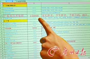在这份数据库中,记者发现了一份15万人的广东高考数据,包括家长和学生姓名、手机号码等。群发公司工作人员表示,这个数据是今年最新的,并且暗示“现在刚开学,对学生家长发‘银行转账类’的挺合适”。
