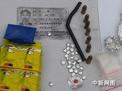 中新网长沙9月16日电 (欧阳浩亚 佘飞) 9月15日凌晨,一辆途经湖南境内长常高速公路的小车因司机操作不当撞向了中央隔离护栏,这原本是一起普通的车祸,但高速交警在处理事故过程中却发现了重重疑点,民警当即对事故车辆和人员进行检查,竟搜出了手枪子弹、毒品、吸食工具等物品。