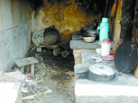 老人有关节炎,但一家的重担都压在他肩上。李广的老伴去年冬天下山采购年货时摔倒了,摔伤了头和胳膊,除了基本的自理外,已经不能做重活了。因家庭贫困,没钱买更好的药,现在老伴主要靠吃一些止痛药来遏止病痛。残疾智障的儿子更需治疗。他们在山顶辟出的三两亩地,已无法养活这个家。