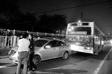 一辆79路公交车逆向倒车,车屁股撞上了正常行驶的别克车屁股,9月25日晚8点左右,这一奇特的撞车景观出现在二环支路的立交桥附近。