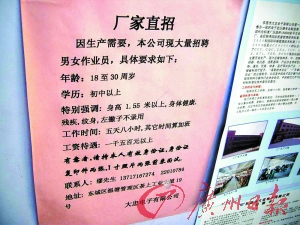 按照伍先生说法,昨日上午,记者来到大忠电子有限公司门口,在该厂门口一个招工牌上,贴着这间工厂的简介(详见右上小图)。