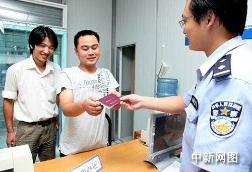 中新网舟山10月1日电 (记者 袁爽) 今天是《浙江省流动人口居住登记条例》正式实施的日子,在浙江舟山市做钢筋工的安徽省阜阳小伙子周怀逸一大早便赶到当地派出所,来领取这张梦寐以求的居住证,从今往后,最为新居民的周怀逸将和当地人享有同等的社会保障、公共服务等具体方面的待遇。