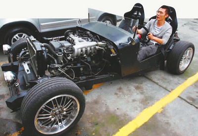 “半年前我一个好朋友兴趣大发,准备自己造车,首先弄个车架、发动机和手动变速箱……”昨日,网名为“圣之夜 ”的网友在四川某汽车论坛上发帖称,他的朋友制作了成都首辆DIY(自己动手)漂移车。该网友上传了一组反映该汽车组装全过程的照片。此外,还有一段该车不久前在金港赛道上玩漂移的视频。从照片中记者看到,这是一辆酷似老爷车的黑色敞篷车,汽车引擎、油箱、车座等全部裸露在外,车座是赛车椅子,车座两旁没有安装车门,真可谓全敞篷。