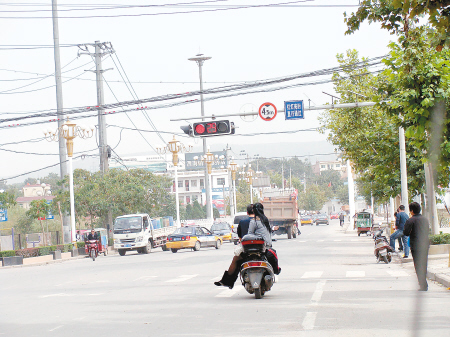 据悉,今年6月份,当地媒体批评交警设立的这个红绿灯不合理,使得东去的车辆经常人为拥堵,出租车司机建议拆除这个红绿灯,改设提示牌或者交警执勤,随后不久交警就在这个红绿灯旁边安装上“红灯亮时 直行通过”的指示牌了事。记者电话采访了渭南临渭交警大队交管科杨科长,他说设立“红灯亮时 直行通过”的牌子是有依据的,记者问依据是什么,他让记者次日去他办公室看。(文/图 记者 石俊荣)