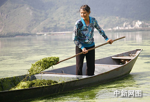 滇池是中国第六大淡水湖,也是目前中国污染最严重的内陆淡水湖泊之一。从一九八八年开始,无论风吹日晒,每天早上七点,昆明西山区福海街道办事处新河社区巾帼打捞队的队员都会划着船进入滇池草海,打捞垃圾和水藻。