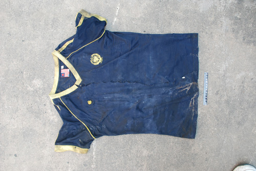 据当地警方悬赏通告称,该死者身高1.52米左右,发长约30公分,头发下半截染为棕黄色,两耳均有三个耳眼,并分别戴有两只金耳环;上身穿黑色V字领短袖T恤,领口、袖口均有一道黄色条纹,肩上有两道黄色条纹,左胸部有一圆形黄色商标图案内有“OBEY”英文字样,右胸部有一黄色苹果图案。死者下身着“特步”牌黑色长裤,脚穿白色袜子和白色“特步”休闲鞋,十个脚趾头全部涂彩。