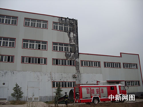 当消防车行使至距火场还有数百米处,就已经能看见火场上空有黑烟冒出。到达现场后,厂房一片狼藉,工人正在紧张进行自救。