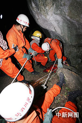 中新网桂林10月14日电 (付兴学 王刚)广西桂林市灵川定江镇3名青年11日进入后龙山一处溶洞探险,由于绳索突然断裂,导致其中一人坠下洞底,两人被困。灵川消防官兵持续3天3夜搜寻,最终救出被困者,而坠洞青年仍生死未卜。
