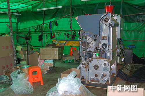 接报后,警方立即赶往现场,其中一个小组民警在板岭村二洞至梅子坪的一个深山窝里,发现了一个六、七十平方米大的工棚。工棚里已不见一个人影,只有制造假烟的生产线一套及成品烟一批。