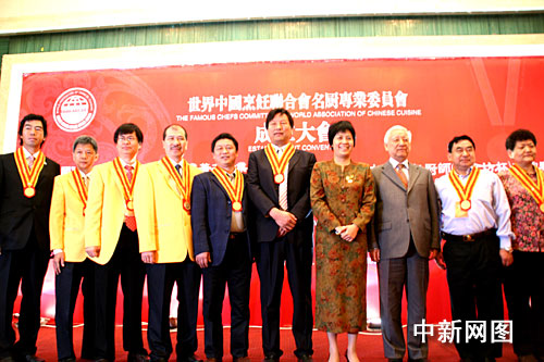 世界中国烹饪联合会名厨专业委员会今年一月经国家批准,正式注册,名称确定为“世界中国烹饪联合会名厨专业委员会(Famous Chef Committee of the World Association of Chinese Cuisine)”。简称“世烹联名厨委”,作为世烹联下设的二级机构同样将办公场所设在北京。旨在为加强国际中餐厨师的交流,提高中餐烹饪技艺水平及中餐厨师的国际地位。图为杨柳会长与首届委员们合影。
