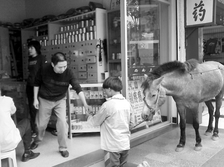 “这么大一只马站在我店门口,还围着这么多人,让我怎么做生意啊。没办法,只能给她钱了。”一店家无奈地说,“这种行乞方式,与流氓勒索没什么两样。”