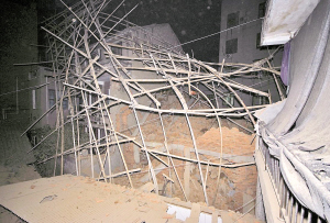 居民张先生说,当时,他在家看电视,突然听到“轰”的一声巨响,慌忙跑出门看见,旁边一栋6层正在粉刷装修的楼房突然倒塌,若此事发生在白天,后果不堪设想。