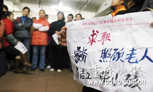 昨下午,记者来到位于渝中区解放西路的南纪门劳务市场,打探保姆行情。一走到女工区,立刻有三四个中年妇女围了过来,询问是否需要保姆。一听是照顾两个80多岁的老人,几个人连连摇头,转身就走。
