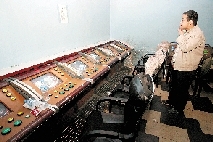 在赌场南墙边的一个小柜上,摆着电子监控显示屏、电子门锁遥控器和对讲机。一红衣小伙说,在他们这儿玩很安全。