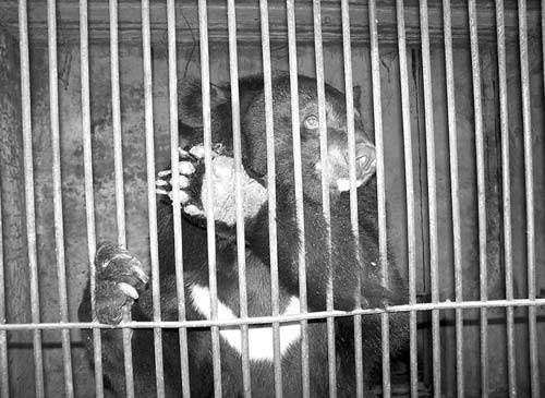 记者看到关黑熊的笼子与游客之间,隔着一道一米多高的铁栏杆,很容易翻过。关黑熊的笼子钢筋之间的缝隙有四五厘米左右。采访过程中,黑熊扒着栅栏站了起来,它那硕大肥厚的爪子竟然从钢筋缝隙里扒了出来。