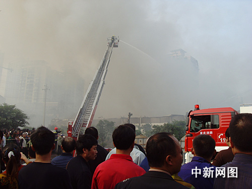 中新网重庆11月11日电 (孟幻)11日13时30分,位于重庆市江北区盘溪的重庆最大茶叶市场仓库突发大火。由于火势过猛,两位正在房顶盖瓦片的工人跳楼逃生,幸无生命危险。目前,大火仍在燃烧,重庆消防部门已调派27辆消防车在现场灭火。