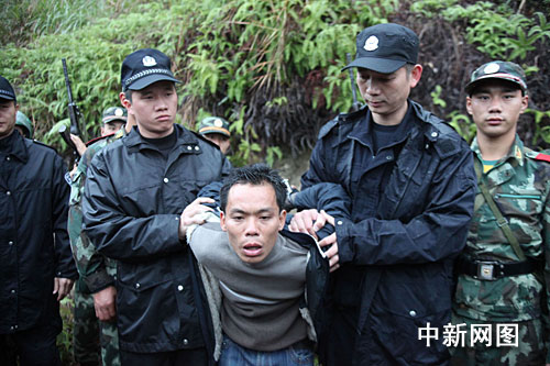 近400名的武警、公安民警以及干部群众冒着蒙蒙细雨,分成40多个小组,形成合围之势,立马展开拉网式的搜山行动。经过两个小时的围山搜捕,16时57分,犯罪嫌疑人石顺兵在“大红山”的最高处的草丛中被搜山的武警战士抓获。