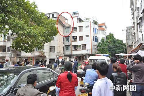 现场群众说,该男子大概是中午12点左右上到楼顶,刚开始还以为是宿舍楼的住客,后来看到男子坐在楼顶边缘将手机、钱包还有一张纸条丢到楼下马路。