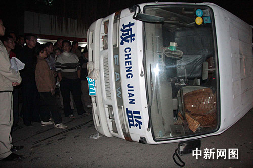 中新网南宁11月25日电 (记者 王刚)广西梧州市有关部门今天向中新网记者证实,昨晚10时许,该市几名城管在执法时与摊贩发生纠纷,引来众人围观,过程中城管执法车被推翻。